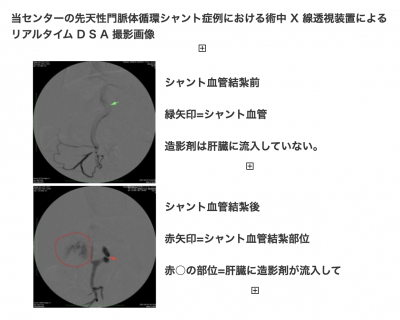 これらの設備を全て備えているのは、大学病院を除いて相模原市内では当センターだけです。したがって、当センター では先天性門脈体循環シャントの診断から治療までの全てをワンストップで行うことができます。